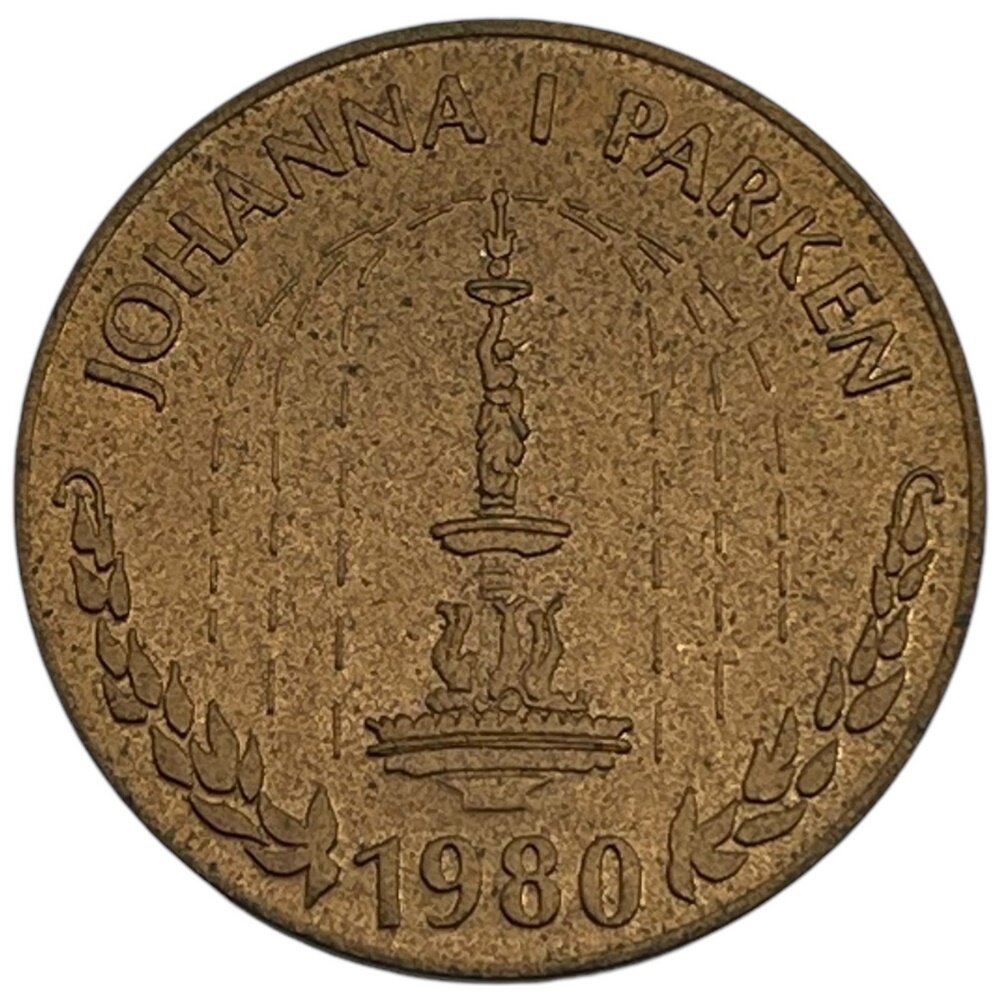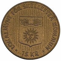 Аверс LOKALMYNT FOR SKELLEFTEA KOMMUN 15 KR Локальный выпуск для коммуны Шеллефтео 15 кронГерб коммуны Шеллефтео легенда по кругуРеверс JOHANNA I PARKEN 1980 Йоханна в парке 1980Фонтан Йоханна в парке расположенный в городском парке Шеллефтео Легенда по кругуФонтан Йоханна в парке это известная скульптура расположенная в городском парке Шеллефтео городе на севере Швеции Этот фонтан является одной из ключевых достопримечательностей города и символом местной культуры