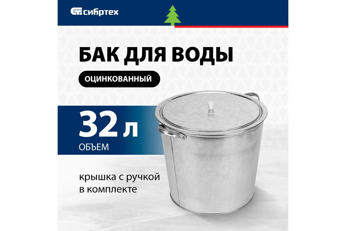 Купить СИБРТЕХ Бак для воды оцинкованный с крышкой 32л, без крана// 67549 с доставкой по всей России. СИБРТЕХ Бак для воды оцинкованный с крышкой 32л, без крана// 67549: сравнение цен, характеристики, фото, актуальное наличие и цены.