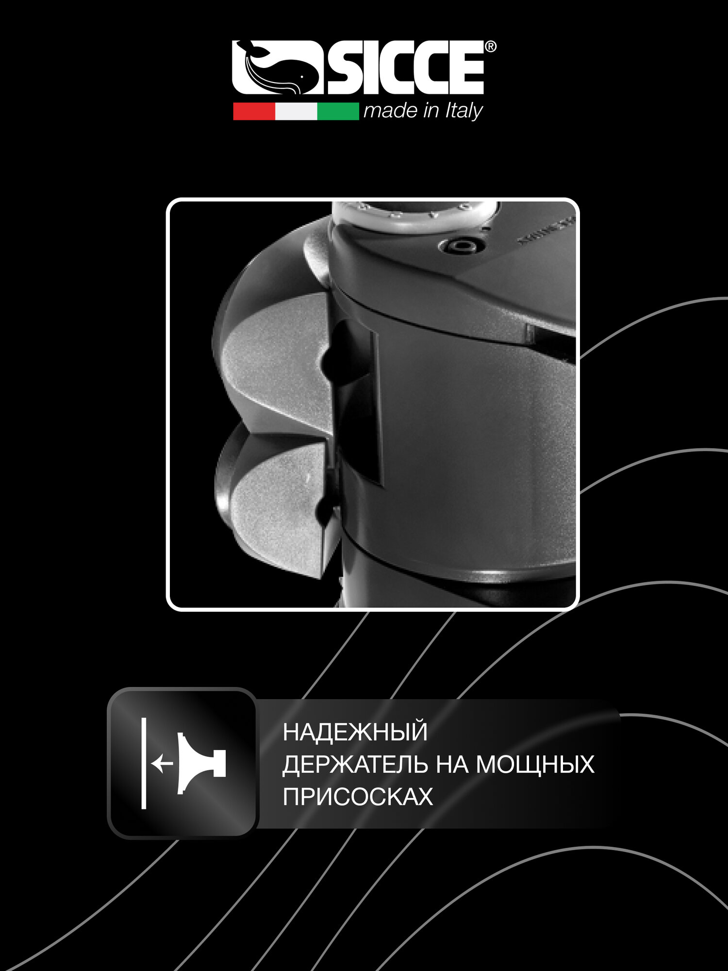 Быстро крепится к стенке аквариума. Широкий угол поворота для лучшего размещения.