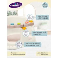 Сиденье для купания - незаменимый аксессуар в уходе за детьми во время водных процедур в ванной. Модель подходит для мытья маленьких мальчиков, девочек в возрасте от 6 месяцев, когда ребенок уже умеет сидеть самостоятельно. Удобная анатомическая форма, размер кресла создают комфорт. Спинка не дает малышу опрокинуться назад. Детали: эргономичная пластмассовая основа, сидушка, перегородка с креплением, разработаны с учетом особенностей анатомии детского тела. Нескользящее сиденье приятно для кожи малютки. Паховый ограничитель и защитный бордюр не разрешат бейби соскользнуть в воду. Раскрывающийся бортик (бампер) даст возможность легко посадить и достать дитя, имеет безопасный замок, кроха не сможет открыть его сам. Сверху поручень украшен вращающимися развивающими игрушками, которые позволят baby весело играть. Развивашки способствуют развитию моторики. Безопасность подтверждается отсутствием острых краев. Есть отметка максимального уровня жидкости, ручка для переноски. Изделие российского производителя высокого качества изготовлено из прочного гипоаллергенного материала, пластмассы без запаха. 4 противоскользящие резиновые присоски ножки надежно фиксируют подставку ко дну ванночки, обеспечивая защиту от скольжения. Крепятся на гладкие поверхности (покрытия). Язычки сбоку помогают быстро открепить их после использования. Красивый, стильный стул станет лучшим практичным подарком на выписку крошки из роддома, день рождения, Защиты детей, Крестины, Новый год, Рождество, без повода для дорогих сына, дочки, внука, внучки, крестницы, крестника, младшего брата, сестры, племянника, племянницы. Может стать настоящим новогодним, рождественским сюрпризом под елку. Родители оценят эстетичный внешний вид, простоту, практичность супер гаджета. Дизайн предмета с декоративными милыми лапками впишется в интерьер дома. Следите за полезными новинками, скидками, акциями, большими распродажами, самым широким ассортиментом полимерных товаров, принадлежностей в наборах, комплектах, в каталоге магазина и оригиналов брендов фирмы.