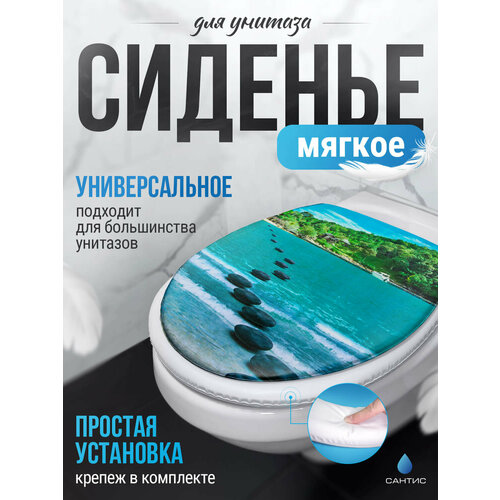 Мягкое и комфортное сиденье для унитаза "Сантис" с ярким рисунком украсит любой санузел.