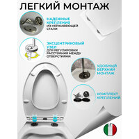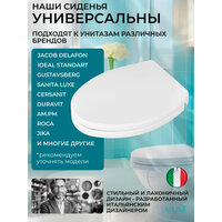 Вы ищете идеальное сиденье для вашего унитаза? Поздравляю, вы нашли его! Представляем вам. Крышка для унитаза универсальная белая с микролифтом из полипропилена с антибактериальным покрытием необходимый аксессуар для современной сантехники. Дизайн сидушки разработан в Италии, а изготовлен в Китае на заводах европейских производителей сантехники. Материал, из которого изготовлен стульчак, высококачественной пластик полипропилен, выглядит как керамика и удерживает тепло, комфортный и надёжный, ощущается как мягкая накладка. Полипропилен не впитывает ни запахи, ни влагу. Его можно использовать как для домашнего и дачного , так и для уличного деревенского . туалета. Белое покрытие нашего кольца не выцветает и не желтеет, устойчивое к ультрафиолету. Выдерживает химическое воздействие. Наше сидение имеет микролифт, он защитит керамику от шалостей детей и неосторожности взрослых. На кружке имеются и опоры амортизаторы. Этот белая сидушка с крышкой имеет универсальное быстросъёмное крепление. Всего лишь нажатием одной кнопки можно снять крышку унитаза и установить на место. Что облегчит чистку самого унитаза и обеспечит поддержание его в чистоте. В комплекте с пластиковым сиденьем идёт набор крепления к унитазу. Но не болты из хрупкого пластика, а надёжный крепёж который установить и отрегулировать сиденье по длине сможет любой взрослый член семьи. Наш пластмассовый ободок унитаза универсальный. подойдет к Jacob Delafon, Laufen, Gustavsberg, Grossman, Roca, сантек, Ideal Standart, villeroy and boch, PianoCeramic, Vitra, Sanita Luxe, OWL, Duravit, Orans, Rosa, АМ-РМ, SENSEA LISSO, Cersanit, Origin Evo , AVIMANO, lavinia boho, Calipso, Bien harmony/Venus. Подойдёт в качестве как семейного сидения, так и в качестве общественного. А так же как на напольный унитаз, так и на подвесной. На унитаз с инсталляцией и с обычным бачком. Друзья, прежде чем оформить заказ и купить, просим Вас обратить внимание на размеры сиденья, чтобы убедиться, что оно подойдет для Вашего унитаза.