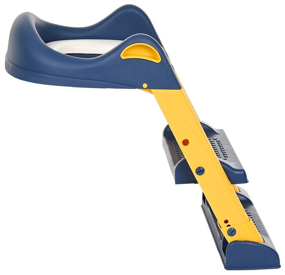 Конструкция имеет удобные поручни и две ступеньки, поэтому ребенок может самостоятельно садиться на унитаз и слезать с него. Кроме того, верхняя ступенька служит подставкой для ног, когда малыш сидит на унитазе.