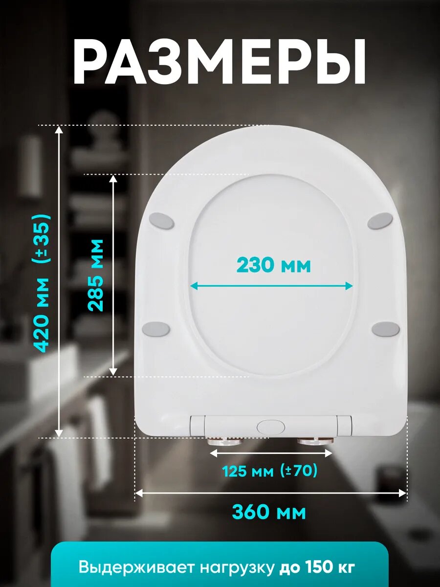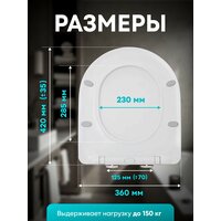 Сиденье для унитаза с микролифтом — это идеальное решение для тех, кто ценит комфорт и чистоту в ванной комнате. Благодаря быстросъемному механизму, вы сможете легко снять сиденье всего за несколько секунд, что значительно упростит уборку даже в самых труднодоступных местах. Забудьте о загрязнениях и влаге — с нашим сиденьем вы получите настоящую свежесть и гигиеничность. Изготовлено из прочного дюропласта, это сиденье выдерживает нагрузки до 150 кг и не теряет своих качеств со временем. Оно не желтеет и не становится хрупким под воздействием моющих средств, что гарантирует его долговечность. Удобное крепление обеспечивает надежную фиксацию сиденья на ободке унитаза и легкость его снятия при необходимости. Установка не требует дополнительных усилий — вы справитесь самостоятельно без посторонней помощи. Стандартные размеры: ширина 360 мм и длина 420 мм, что делает его универсальным вариантом для большинства моделей унитазов. Сиденье оснащено доводчиком микролифта, который обеспечивает бесшумное закрытие крышки. Теперь вы можете не беспокоиться о том, что громкий звук разбудит семью ночью — никаких хлопков и лишних шумов! Эта универсальная модель подходит как для детей, так и для взрослых, обеспечивая комфортное использование для всех членов семьи. Классический белый цвет сиденья идеально впишется в интерьер любой ванной комнаты, будь то квартира или загородный дом. Это отличный подарок для ваших близких, который добавит уют и заботу в их жизнь. Обратите внимание! Перед покупкой обязательно проверьте форму и размеры вашего унитаза, чтобы выбрать подходящую модель сиденья.