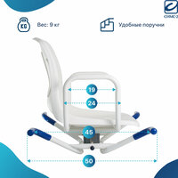 Пластиковое поворотное сиденье для ванны BS-Twist облегчает принятия водных процедур. Алюминиевые ножки с резиновыми наконечниками создают крепкое прилегание сиденья к ванне. Спинка и поручни поддерживают удобное положение тела и не позволят упасть. Отверстия способствуют оттоку воды.