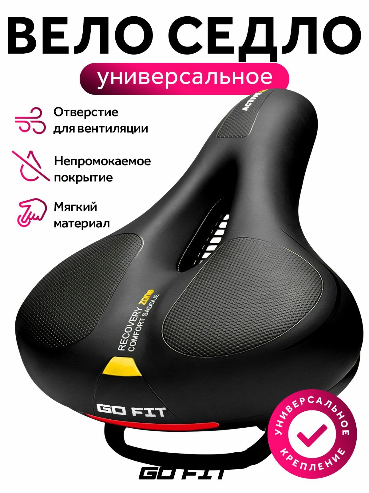 Сиденье для велосипеда GO FIT Soft Saddle, спортивное, универсальное со светоотражателем, мягкая сидушка, черный-желтый: сравнение цен, характеристики, фото, актуальное наличие и цены.