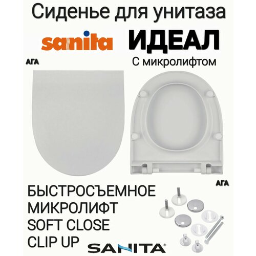 Купить Сиденье — Крышка для унитаза Sanita идеал микролифт Soft Close, быстросъемное Clip UP с доставкой по всей России.