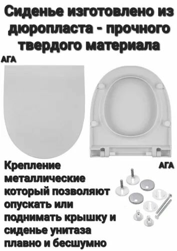 В комплекте регулируемый крепеж с функцией микролифт (Soft Close) и быстросъем (Clip UP). Регулирует межосевое расстояние от 145мм до 175мм. Шпилька М6*85мм, резьбовая часть 78мм. Микролифт механизм предотвращает механические повреждения сантехники, появление микротрещин на эмали унитаза и на самом сиденье. Изделие изготовлено из дюропласта - прочного твердого материала, устойчивого к царапинам и обладающего антистатическими и антибактериальными свойствами. Дюропласт не выцветает со временем, не впитывает запахи.