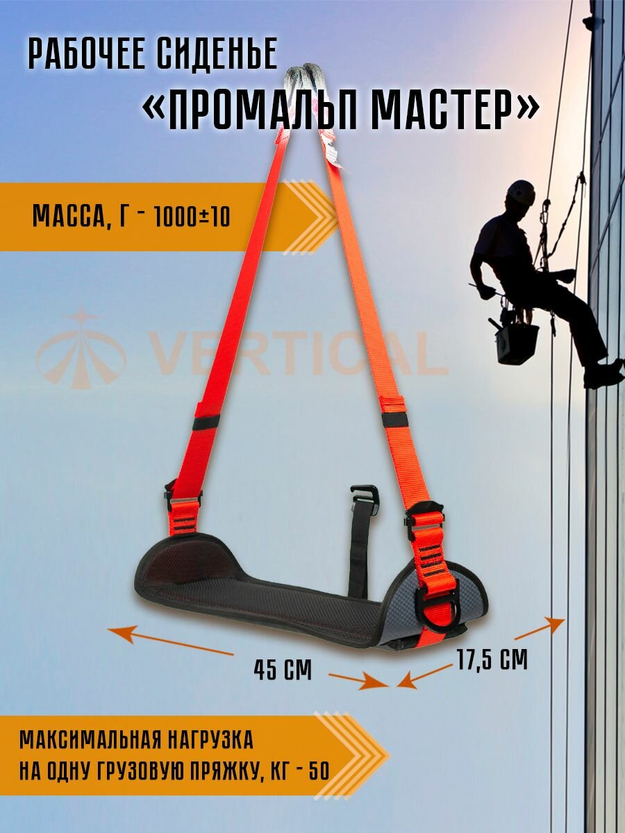 Данное рабочее сиденье предназначено для использования совместно со страховочной привязью «Промальп Мастер 2020», но допускается использование сиденья совместно с другими страховочными привязями.