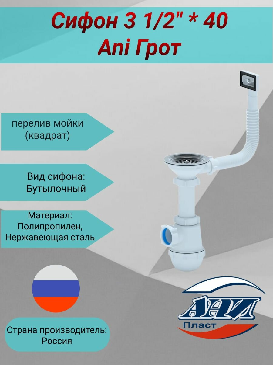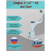 Сифон 3 1/2″ * 40 Ani Грот (А0145S) с переливом мойки (квад.): сравнение цен, характеристики, фото, актуальное наличие и цены.