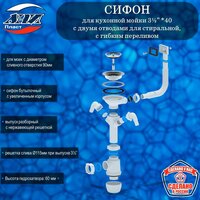Купить Сифон АНИ Пласт А0146S Грот 3 1/2″ х 40 для кухонной мойки с 2-мя отводами для стир. машины, с гибким переливом с доставкой по всей России.