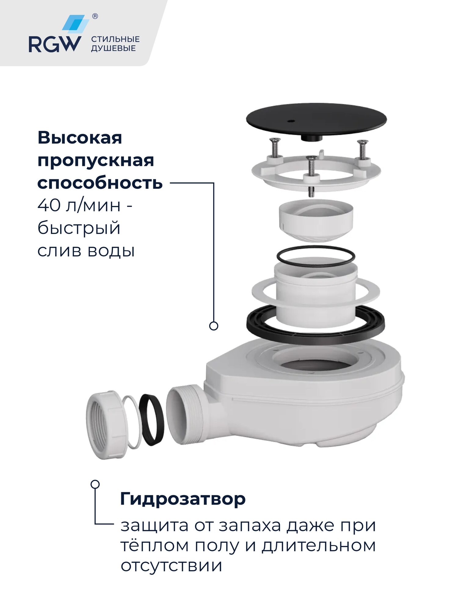 Купить Сифон для душевого поддона RGW S-18B черный с доставкой по всей России. Сифон для душевого поддона RGW S-18B черный: сравнение цен, характеристики, фото, актуальное наличие и цены.