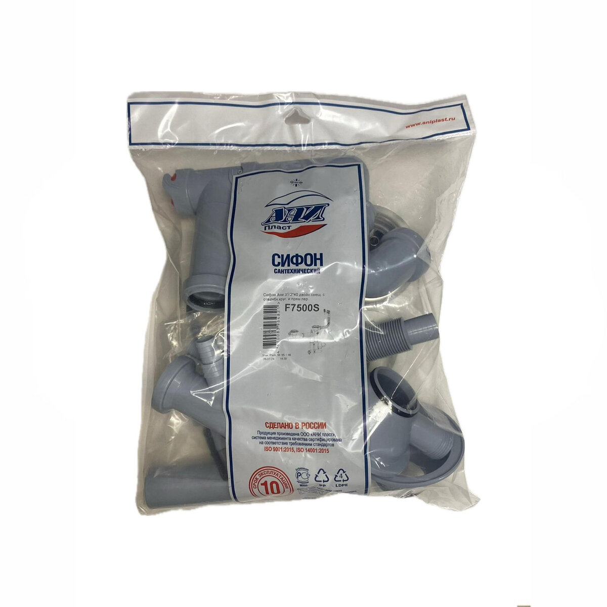 Купить Сифон для двойной мойки АНИ пласт F7500S, 3 1/2″х40мм, смещённый, с гибким круглым и прямоугольным переливом, с отводом для бытовой техники с доставкой по всей России.