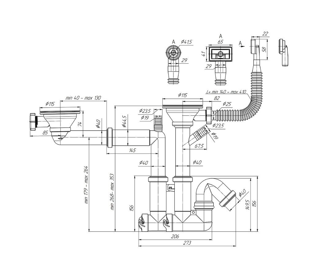 Сифон для двойной мойки АНИ пласт F7500S, 3 1/2″х40мм, смещённый, с гибким круглым и прямоугольным переливом, с отводом для бытовой техники: сравнение цен, характеристики, фото, актуальное наличие и цены.