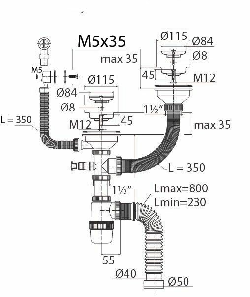Сифон для двойной разноуровневой мойки с нержавеющими чашками 114 мм BAU Dream с отводом для стиральной или посудомоечной машины и с круглым и квадратным переливами 3 «- 40: сравнение цен, характеристики, фото, актуальное наличие и цены.