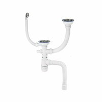 Купить Сифон для двойной разноуровневой мойки с нержавеющими чашками 114 мм BAU Dream с отводом для стиральной или посудомоечной машины и с круглым и квадратным переливами 3 «- 40 с доставкой по всей России.