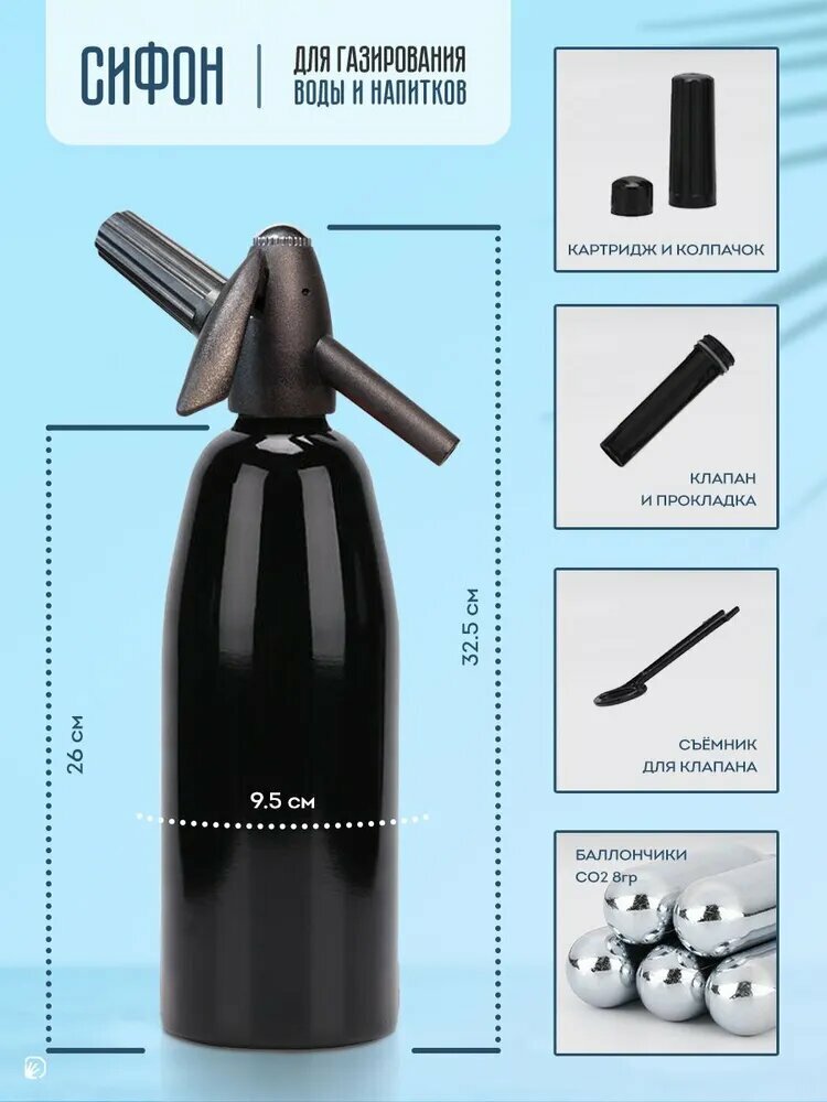 Сифон для газирования воды и напитков, 1л, чёрный: сравнение цен, характеристики, фото, актуальное наличие и цены.