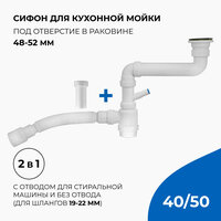 Купить Сифон для кухонной мойки 2 в 1, 1.1/2″х40, с и без отвода для стиральной машины с гибким соединением 40х40/50 с доставкой по всей России. Сифон для кухонной мойки 2 в 1, 1.1/2″х40, с и без отвода для стиральной машины с гибким соединением 40х40/50: сравнение цен, характеристики, фото, актуальное наличие и цены.
