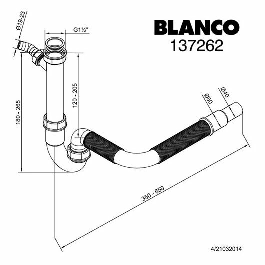 Сифон для кухонной мойки Blanco 137262, с гафрированнной трубкой, выход 40*50 мм: сравнение цен, характеристики, фото, актуальное наличие и цены.