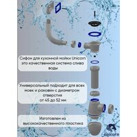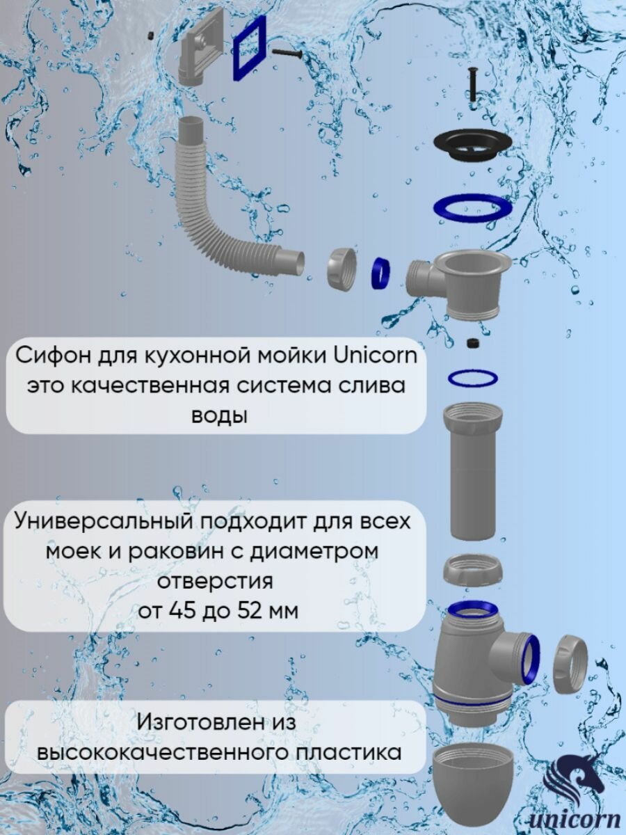 Сифон для кухонной мойки подключение 1 1/2″ (40 мм), выпуск 1 1/2″ (40), прямоугольные перелив, чашка из нержавеющей стали, без отвода в канализацию, сифон для кухни Unicorn B420 5 штук: сравнение цен, характеристики, фото, актуальное наличие и цены.