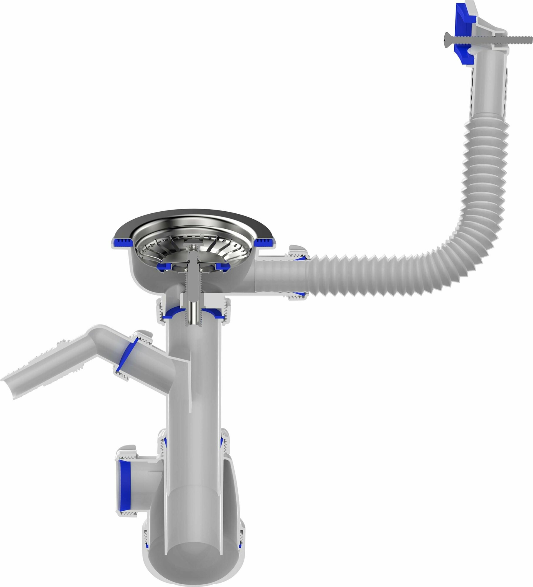 Купить Сифон для мойки 3 1/2’х40 с отводом для стиральной машины с прямоугольным переливом с доставкой по всей России.