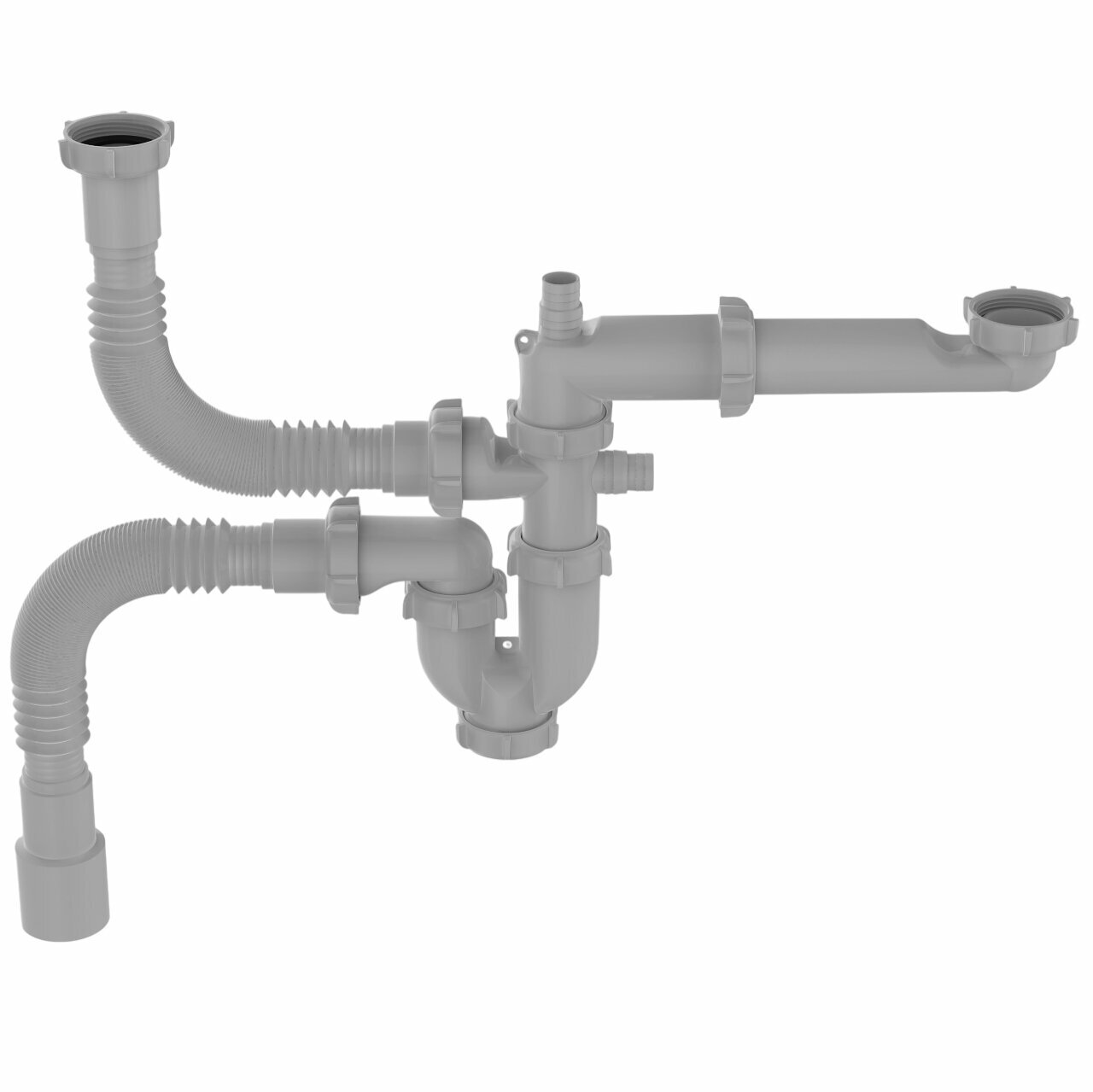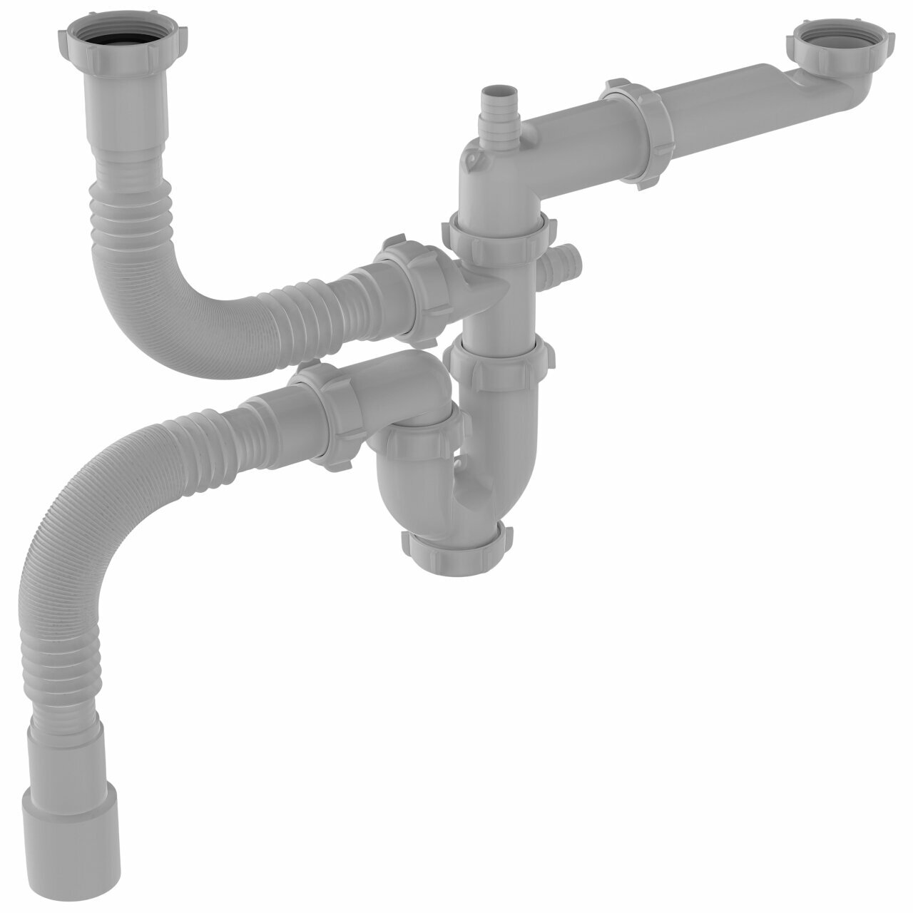 Купить Сифон для мойки двойной Equation 40 мм без выпуска 2 отвода с доставкой по всей России.