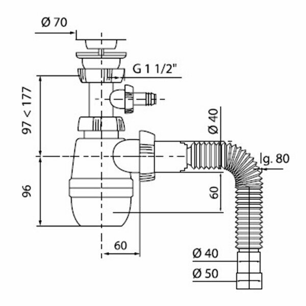 Сифон для мойки WIRQUIN 30718030 1 1/2″х40 мм с выпуском D 70 мм с отводом и гибким соединением: сравнение цен, характеристики, фото, актуальное наличие и цены.