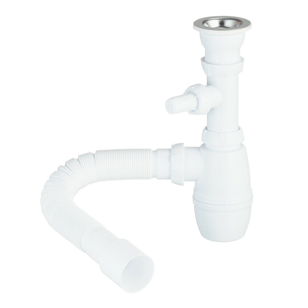 Купить Сифон для мойки WIRQUIN 30718030 1 1/2″х40 мм с выпуском D 70 мм с отводом и гибким соединением с доставкой по всей России.