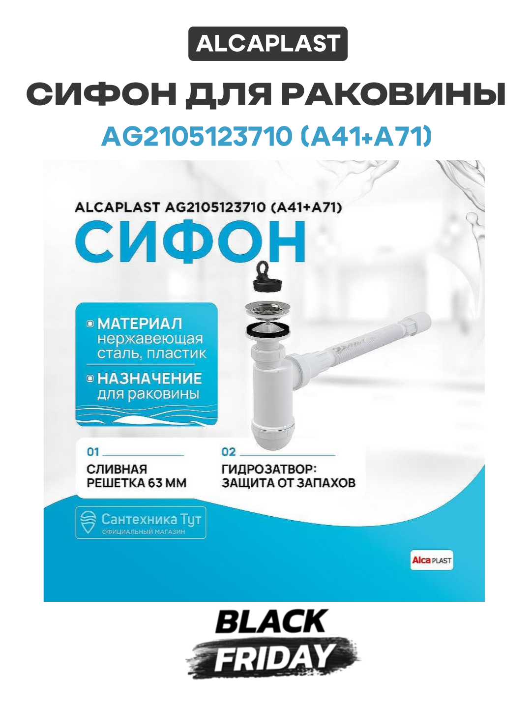 Сифон для раковины Alcaplast AG2105123710 (A41+A71) Хром, современный стиль: сравнение цен, характеристики, фото, актуальное наличие и цены.