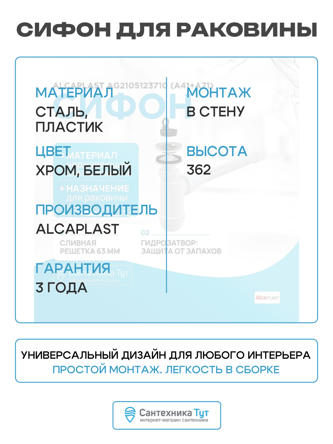 Купить Сифон для раковины Alcaplast AG2105123710 (A41+A71) Хром, современный стиль с доставкой по всей России.