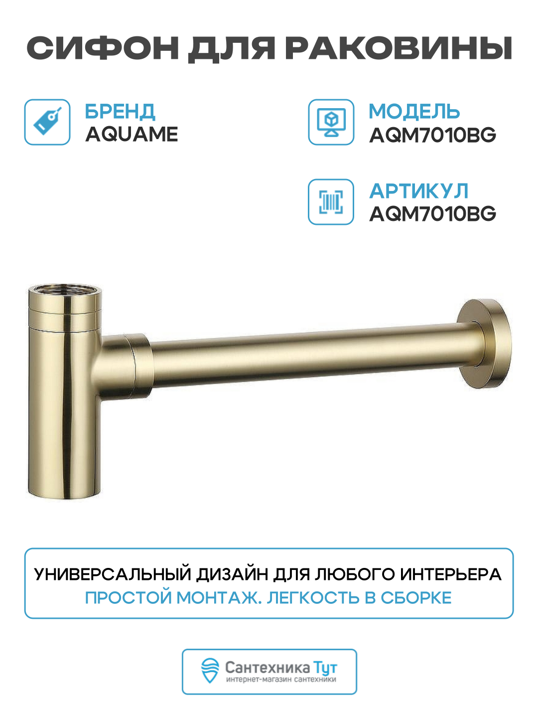 Купить Сифон для раковины AQUAme AQM7010BG Шлифованное золото латунь золото с доставкой по всей России. Сифон для раковины AQUAme AQM7010BG Шлифованное золото латунь золото: сравнение цен, характеристики, фото, актуальное наличие и цены.