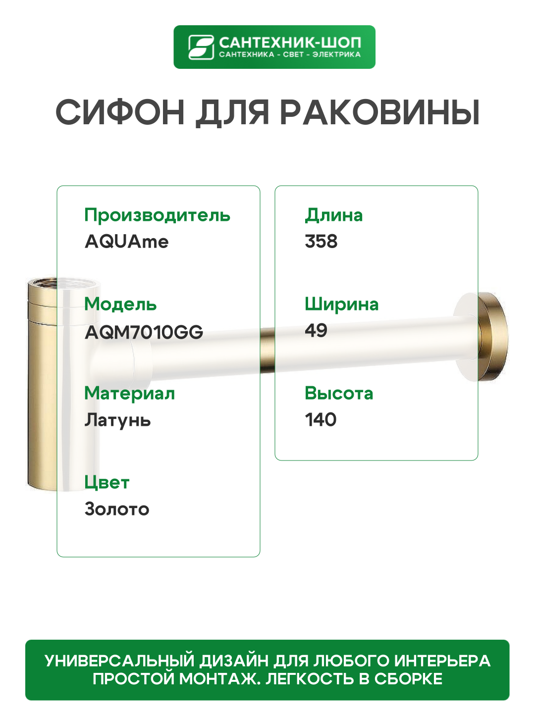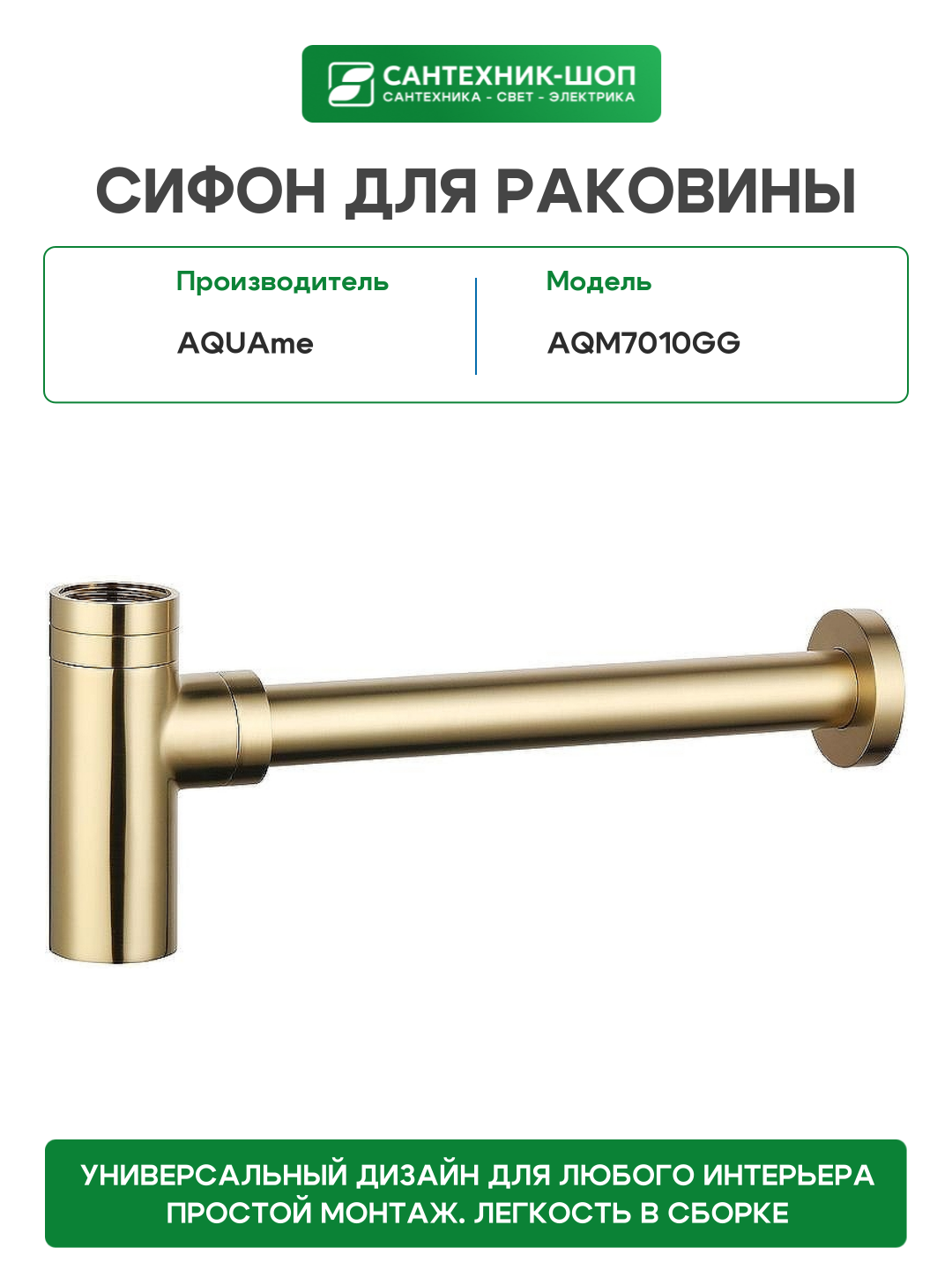 Сифон для раковины AQUAme AQM7010GG Золото глянцевое латунь золото: сравнение цен, характеристики, фото, актуальное наличие и цены.