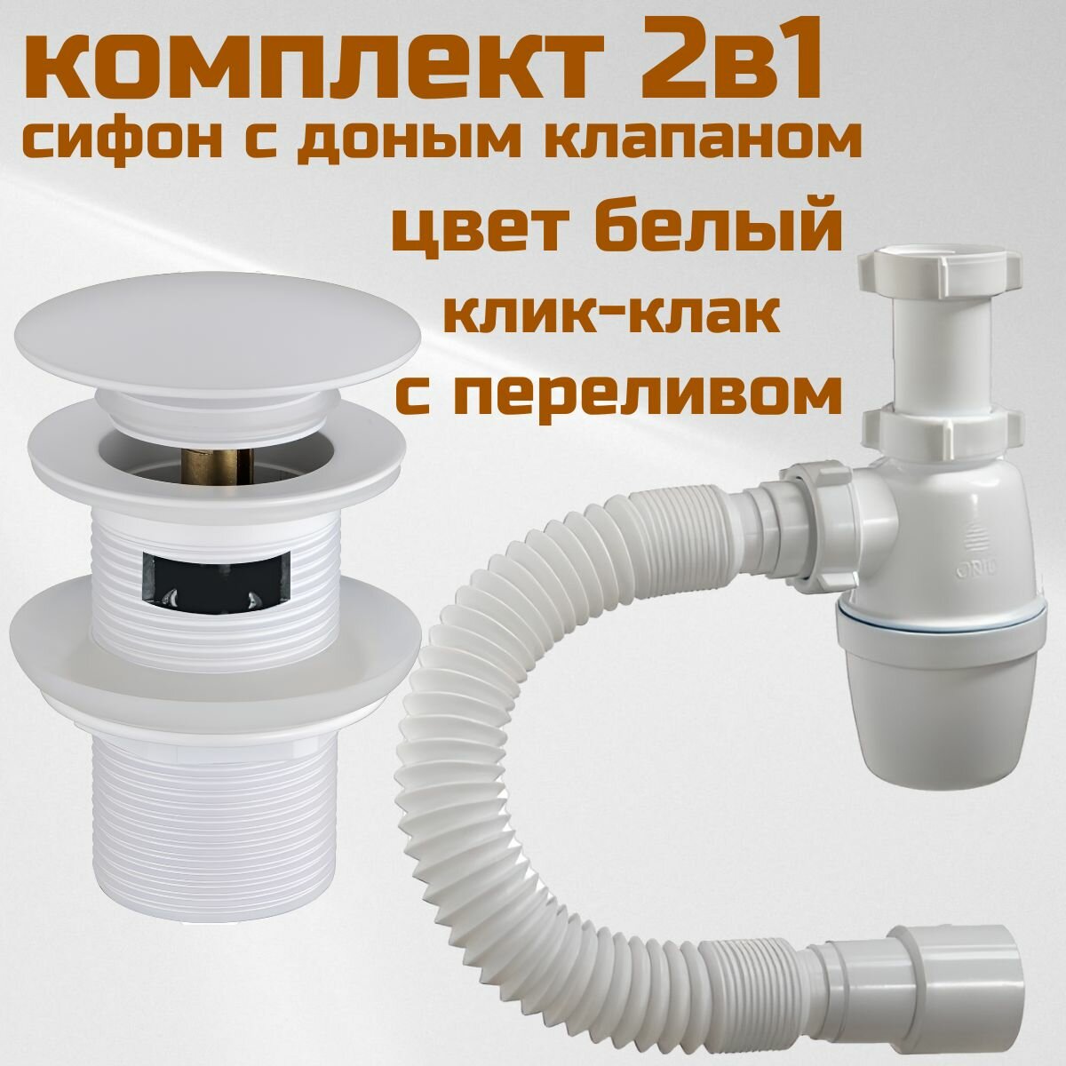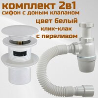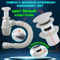 Купить Сифон для раковины белый комплект с донным клапаном клик клак с переливом с доставкой по всей России. Сифон для раковины белый комплект с донным клапаном клик клак с переливом: сравнение цен, характеристики, фото, актуальное наличие и цены.
