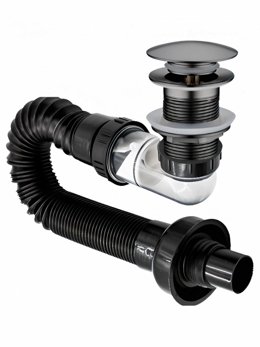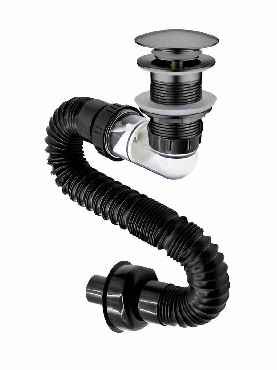Купить Сифон для раковины без перелива с донным клапаном графит с доставкой по всей России.
