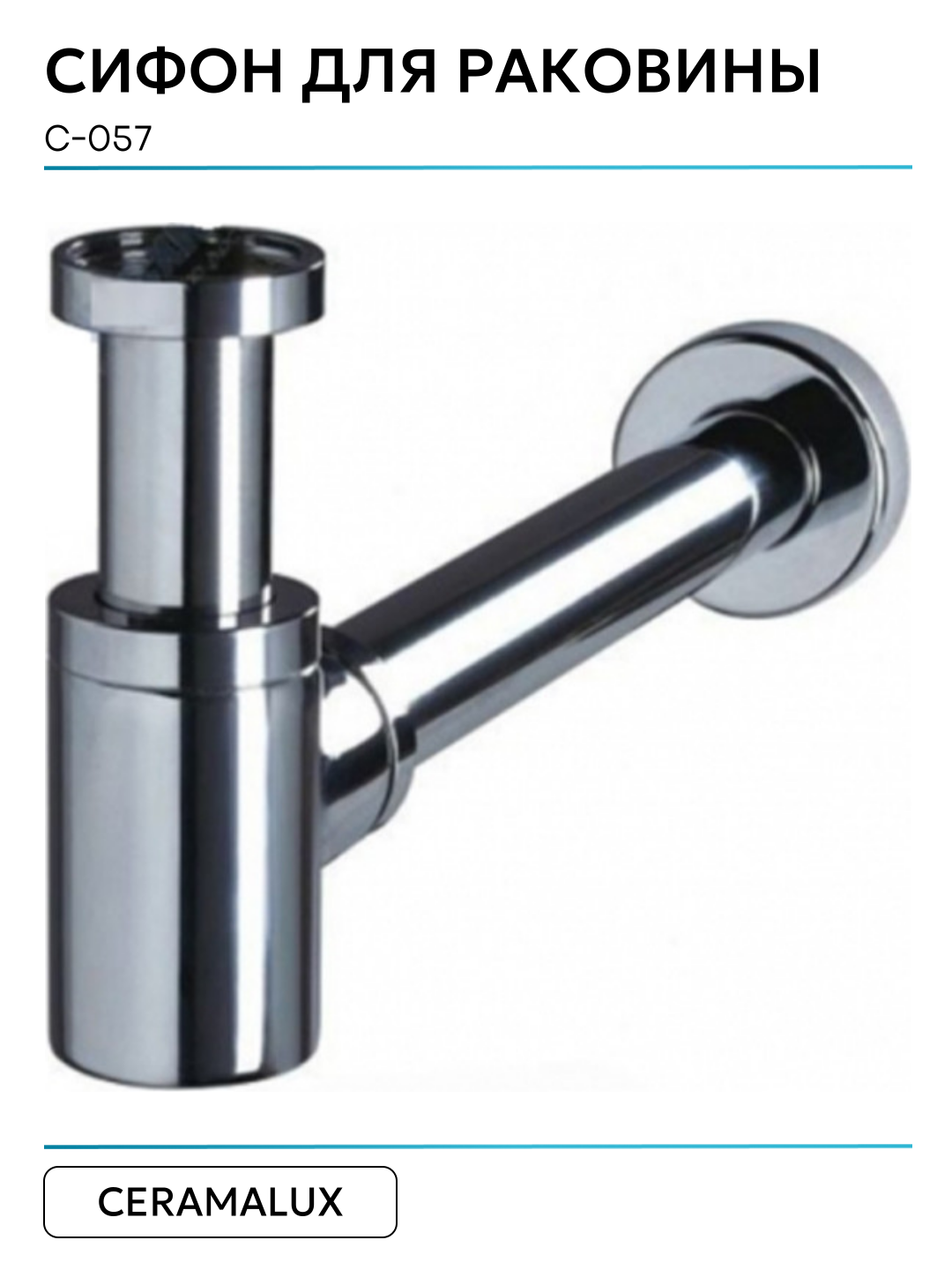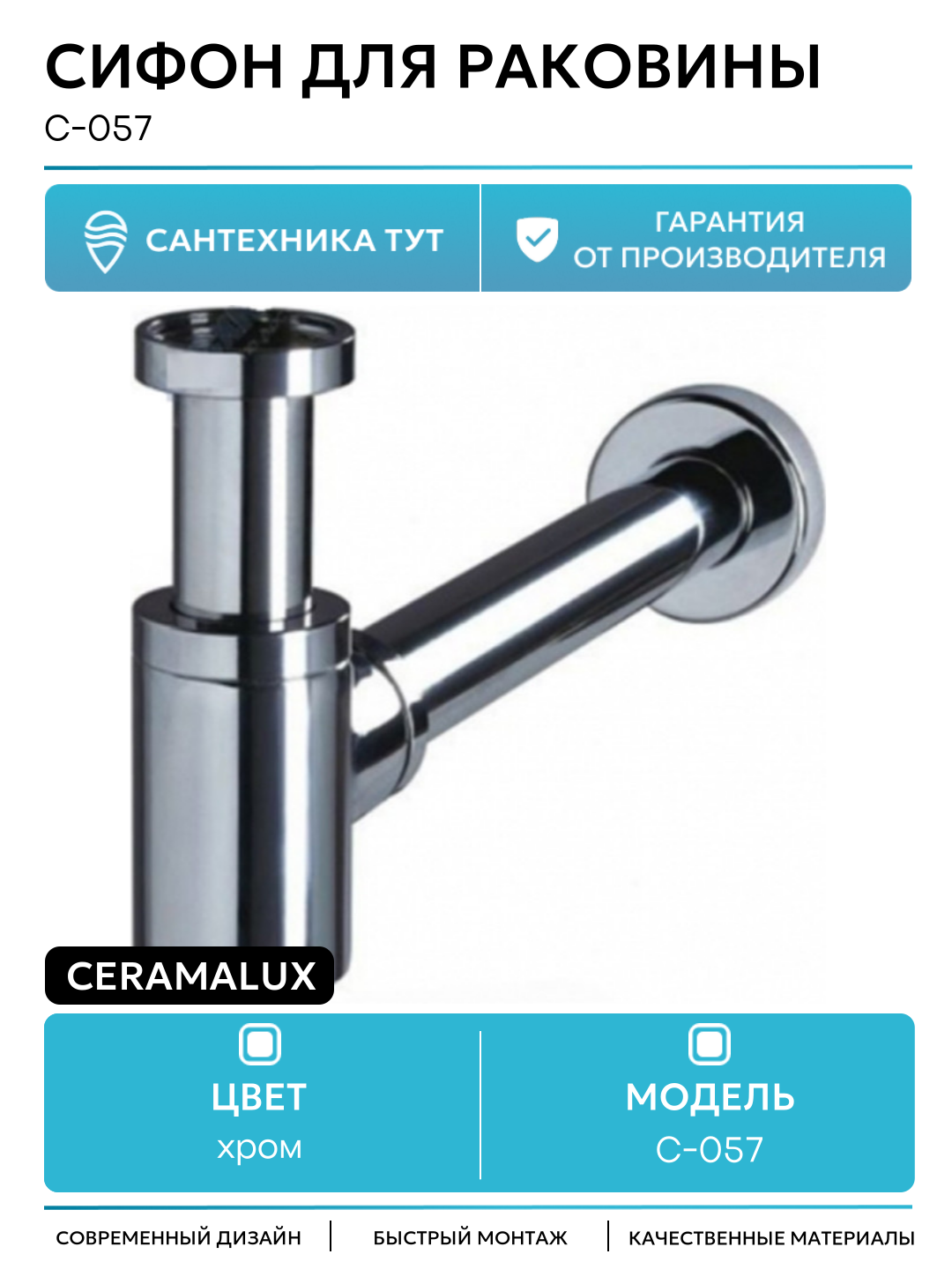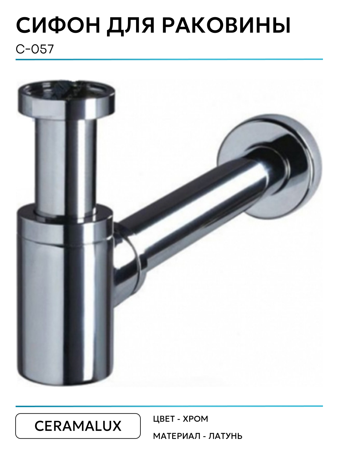 Сифон для раковины «CeramaLux» С-057, латунь, цвет хром, стильный аксессуар для ванной: сравнение цен, характеристики, фото, актуальное наличие и цены.