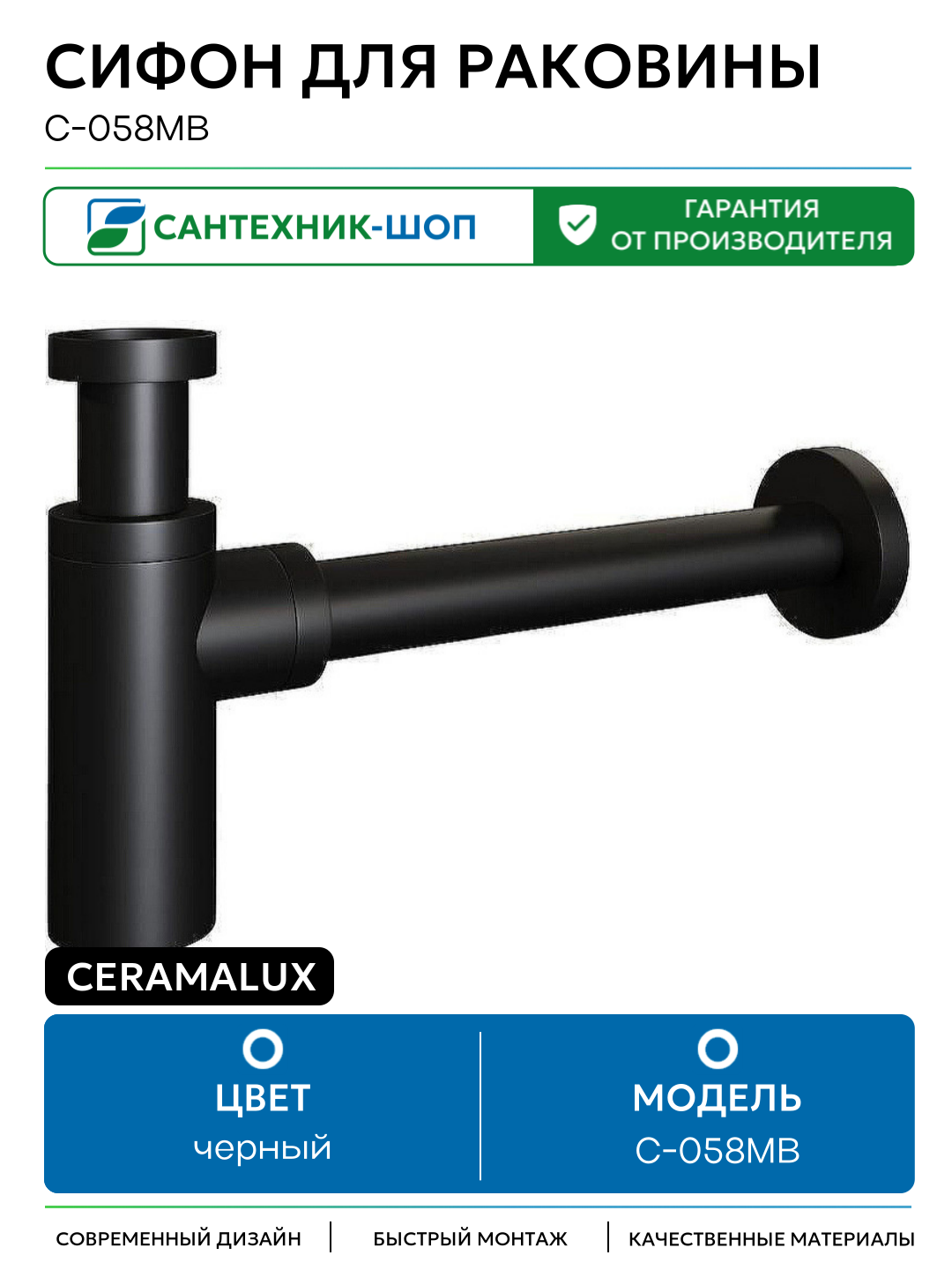 Купить Сифон для раковины CeramaLux С-058MB Черный матовый латунь черный с доставкой по всей России. Сифон для раковины CeramaLux С-058MB Черный матовый латунь черный: сравнение цен, характеристики, фото, актуальное наличие и цены.