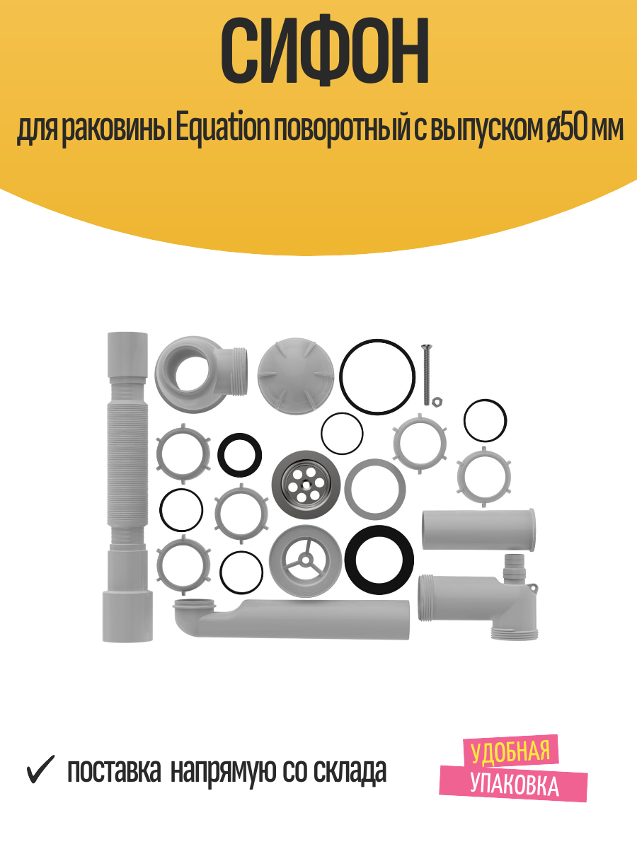 Сифон для раковины Equation поворотный с выпуском ø50 мм: сравнение цен, характеристики, фото, актуальное наличие и цены.