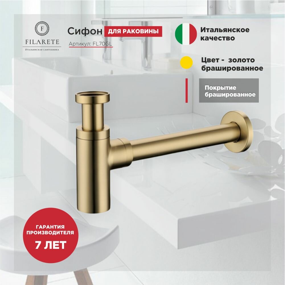 Купить Сифон для раковины FILARETE FL70 (золотой брашированный) с доставкой по всей России. Сифон для раковины FILARETE FL70 (золотой брашированный): сравнение цен, характеристики, фото, актуальное наличие и цены.