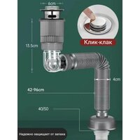 Сифон для раковины и умывальника с донным клапаном клик-клак