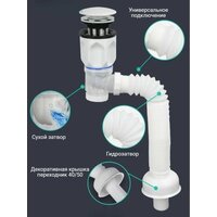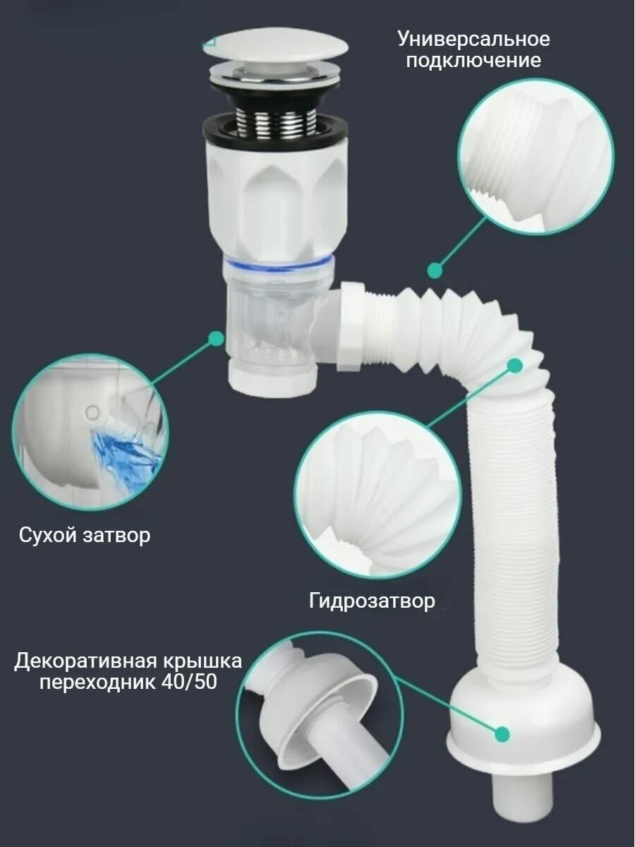 Купить Сифон для раковины с белым клапаном клик-клак с доставкой по всей России. Сифон для раковины с белым клапаном клик-клак: сравнение цен, характеристики, фото, актуальное наличие и цены.