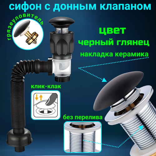Купить Сифон для раковины с донным клапаном без перелива черный глянцевый с доставкой по всей России. Сифон для раковины с донным клапаном без перелива черный глянцевый: сравнение цен, характеристики, фото, актуальное наличие и цены.