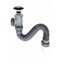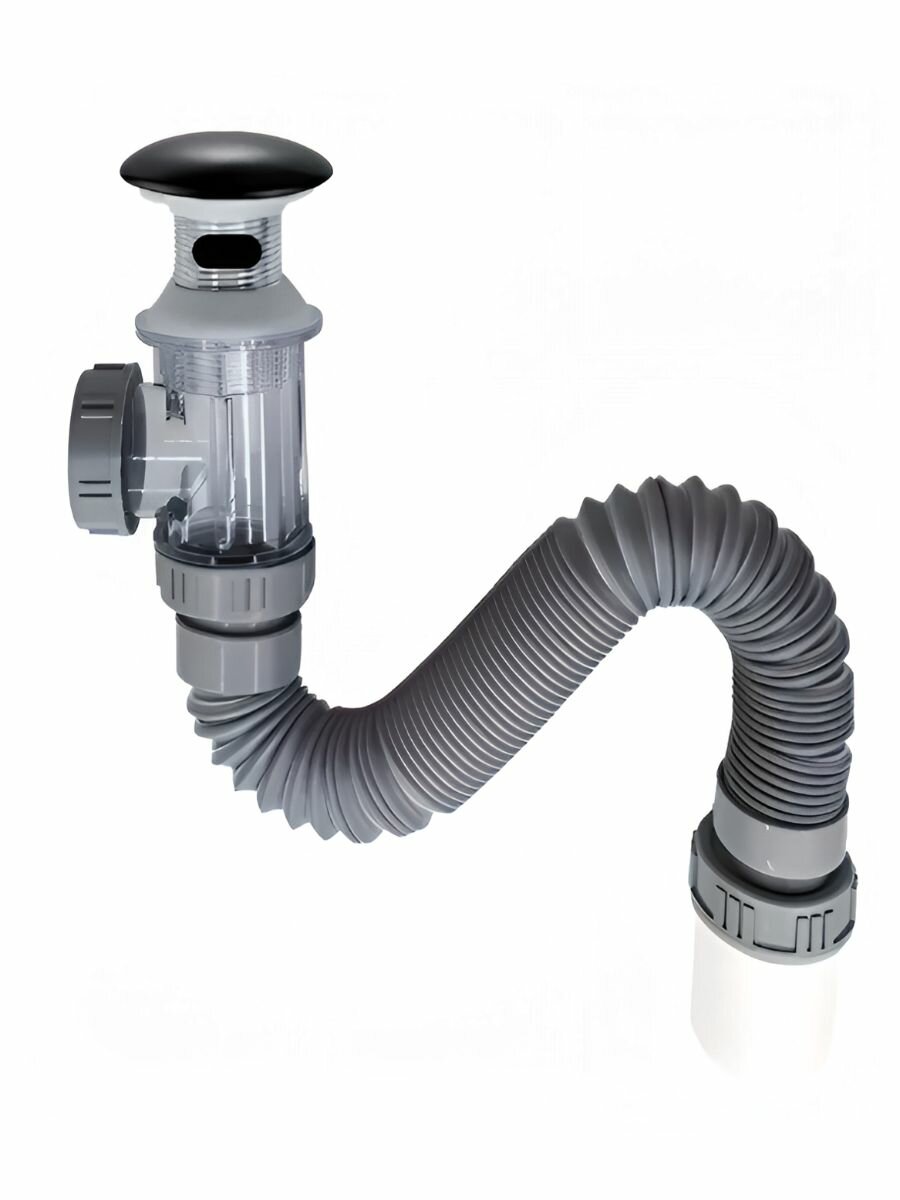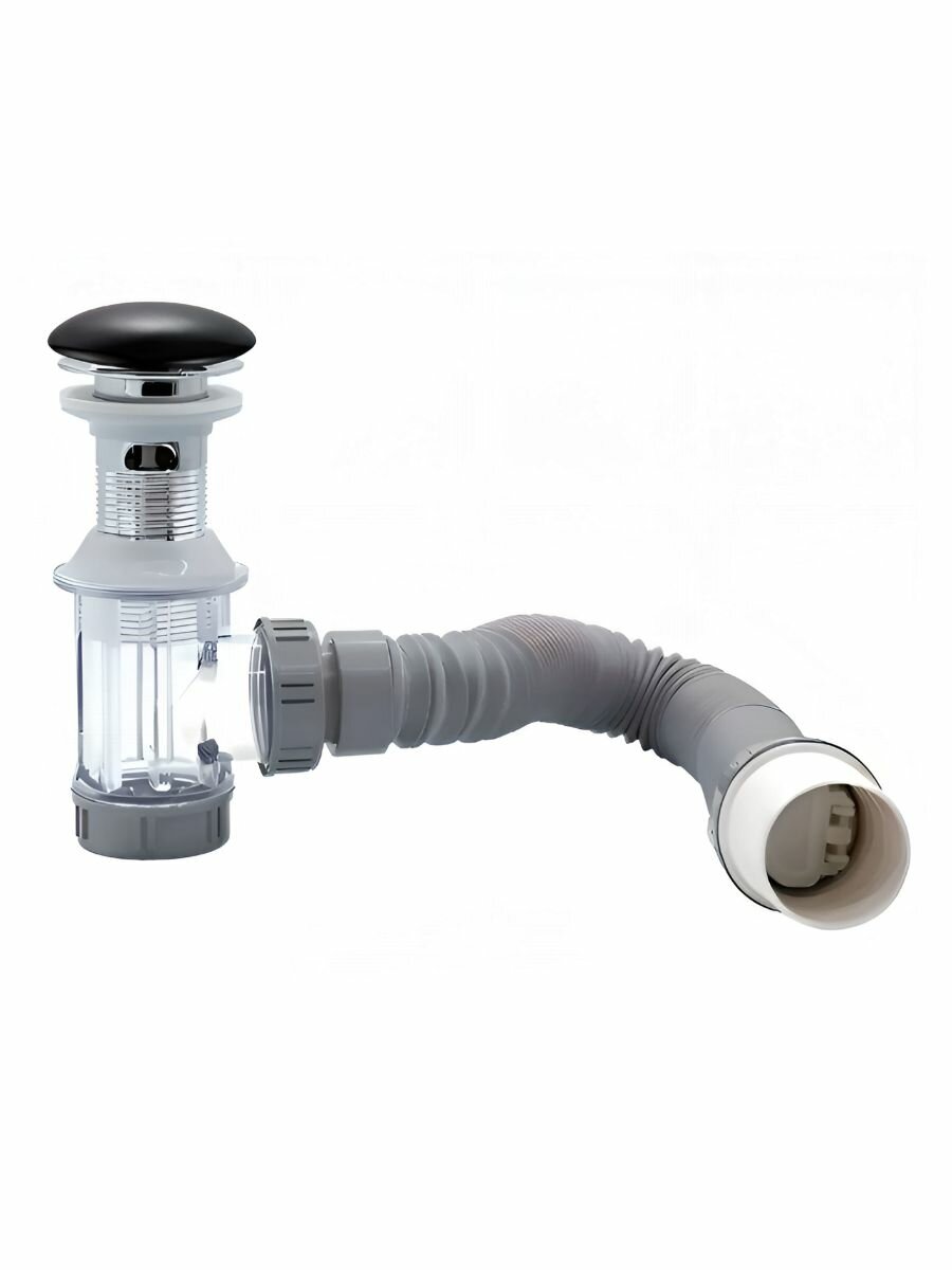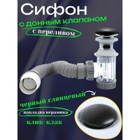 Купить Сифон для раковины с донным клапаном черный глянцевый клик-клак с переливом SanNeva с доставкой по всей России.