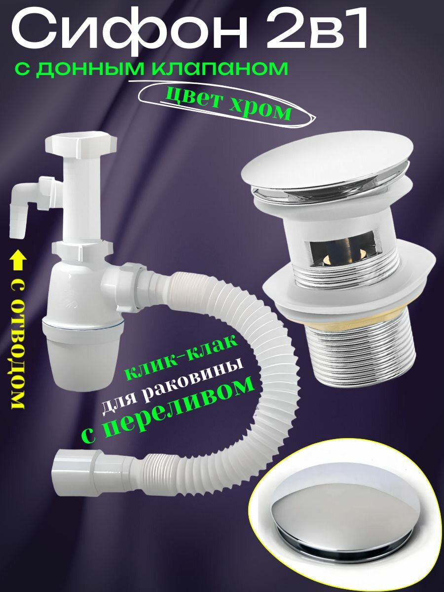 Сифон для раковины с донным клапаном хром с переливом и отводом под стиральную машину: сравнение цен, характеристики, фото, актуальное наличие и цены.