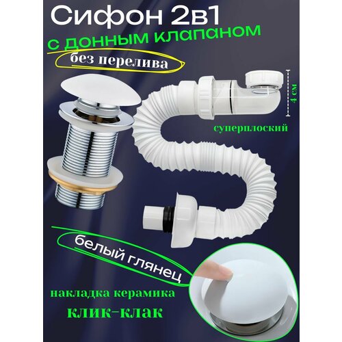 Купить Сифон для раковины с донным клапаном клик-клак без перелива белый глянцевый с доставкой по всей России. Сифон для раковины с донным клапаном клик-клак без перелива белый глянцевый: сравнение цен, характеристики, фото, актуальное наличие и цены.