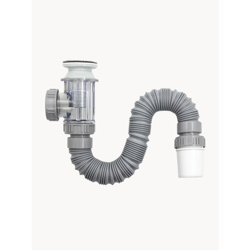 Сифон оснащен съемной сеткой грязеуловителем, которая предотвращает засорение канализации. Это обеспечивает долговечность и надежность работы сифона.