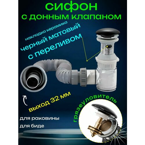 Сифон для раковины с черной матовой отделкой станет не только практичным элементом вашего интерьера, но и важной деталью, которая сделает вашу ванную или кухню более стильной и уютной. Идеальный баланс между функциональностью и эстетикой делает этот продукт незаменимым для тех, кто ценит качество и стиль в каждой детали своего дома. Металлический донный клапан клик клак под раковину с выходом 32мм и 40 мм.