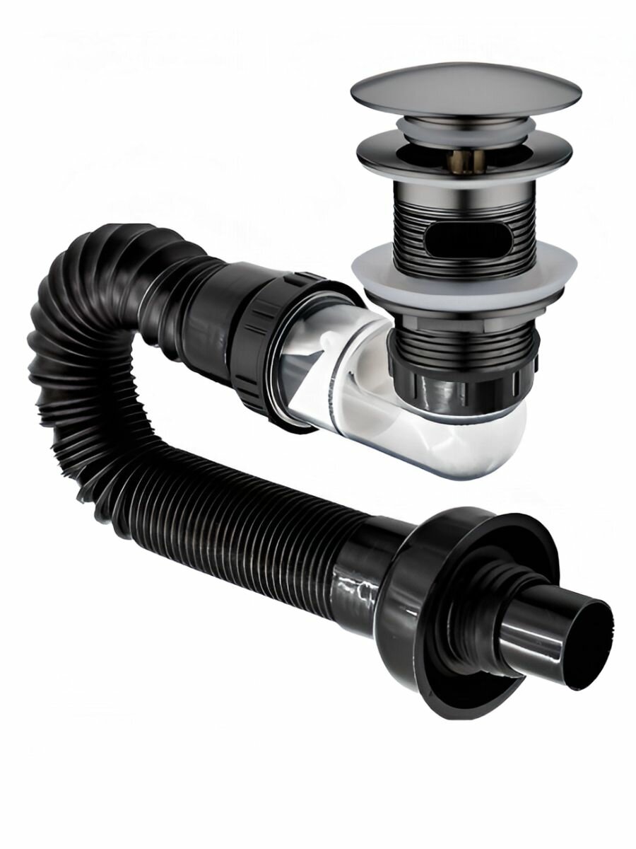 Купить Сифон для раковины с переливом графит с доставкой по всей России.