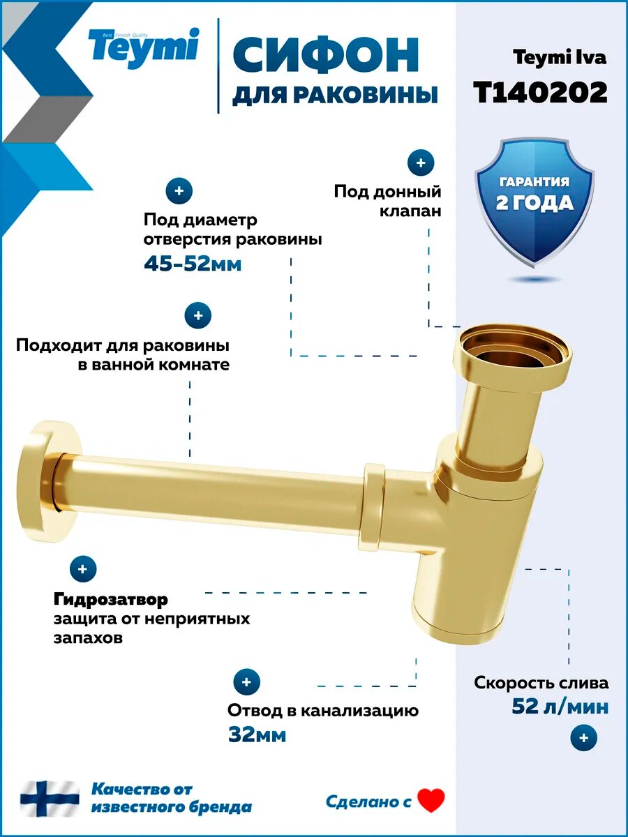 Купить Сифон для раковины в ванную Teymi Iva золото глянцевый T140202 с доставкой по всей России. Сифон для раковины в ванную Teymi Iva золото глянцевый T140202: сравнение цен, характеристики, фото, актуальное наличие и цены.