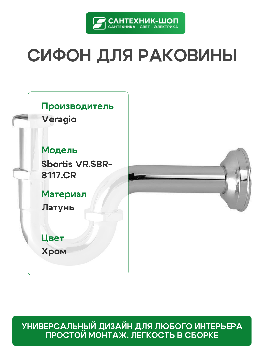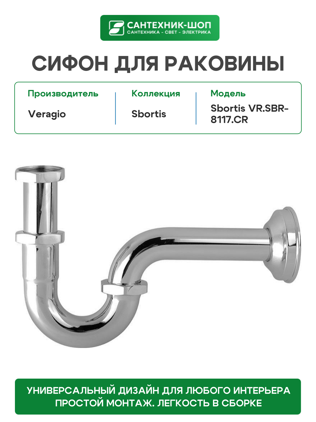 Купить Сифон для раковины Veragio Sbortis VR. SBR-8117. CR Хром латунь хром с доставкой по всей России. Сифон для раковины Veragio Sbortis VR. SBR-8117. CR Хром латунь хром: сравнение цен, характеристики, фото, актуальное наличие и цены.