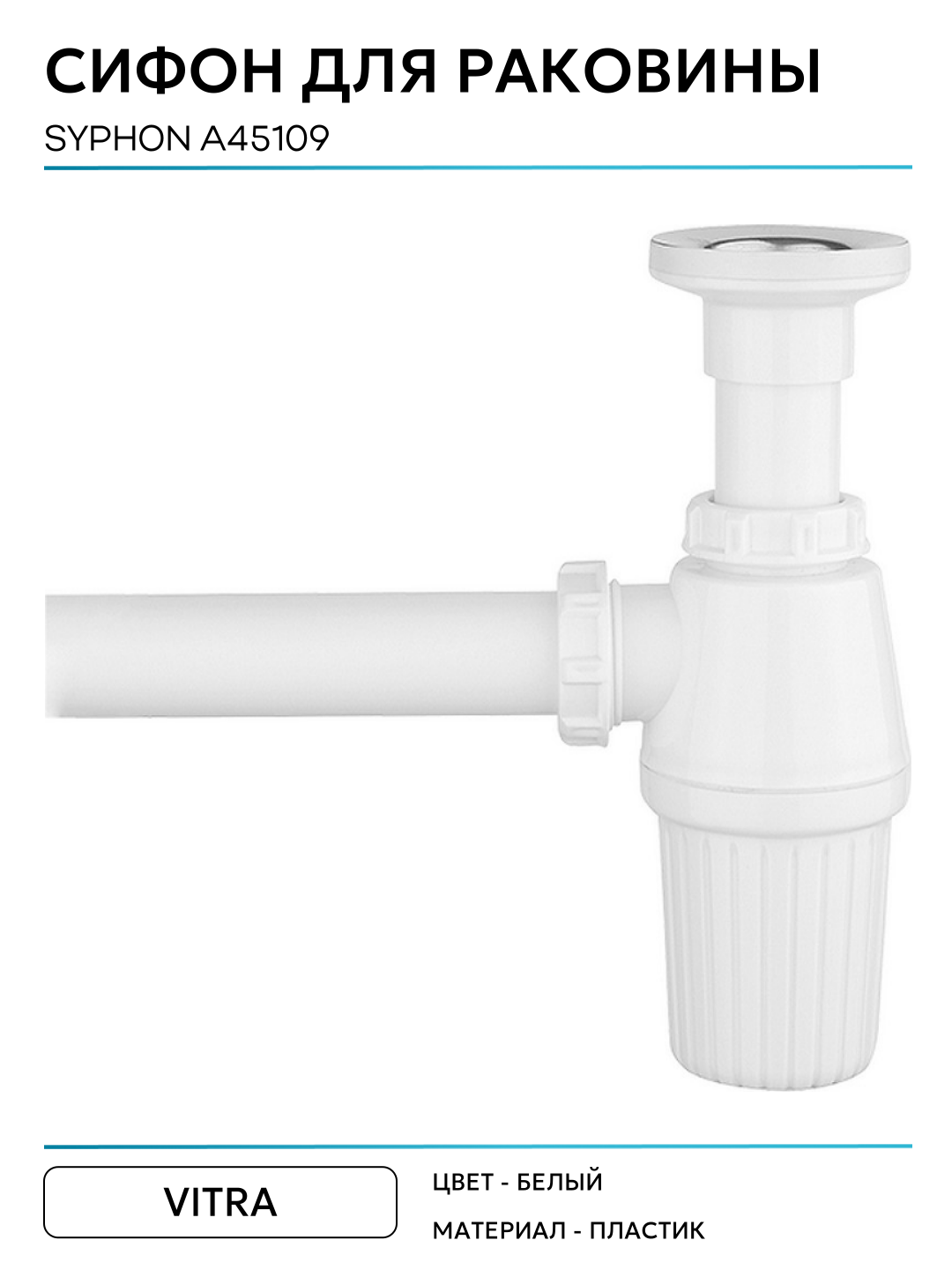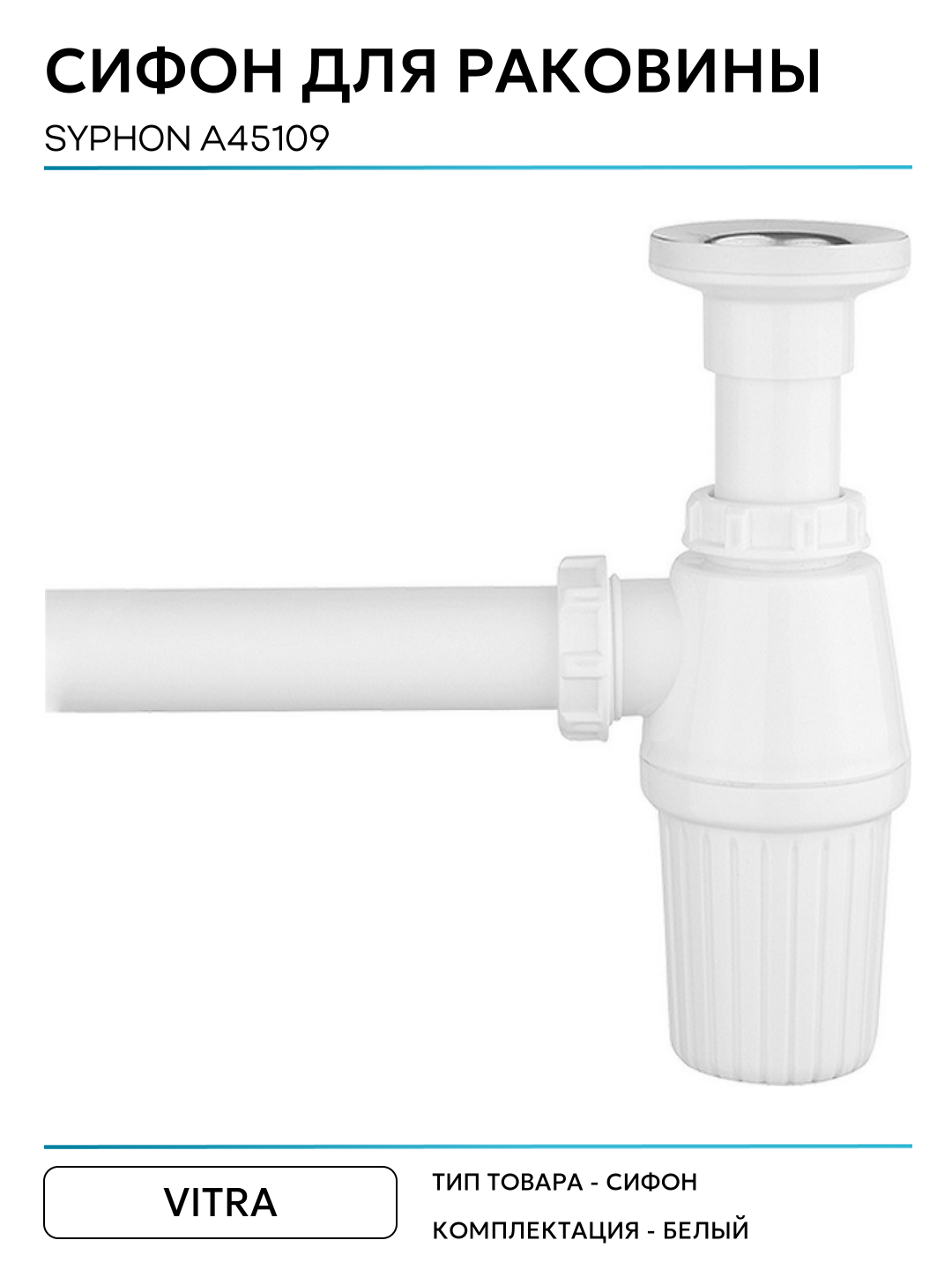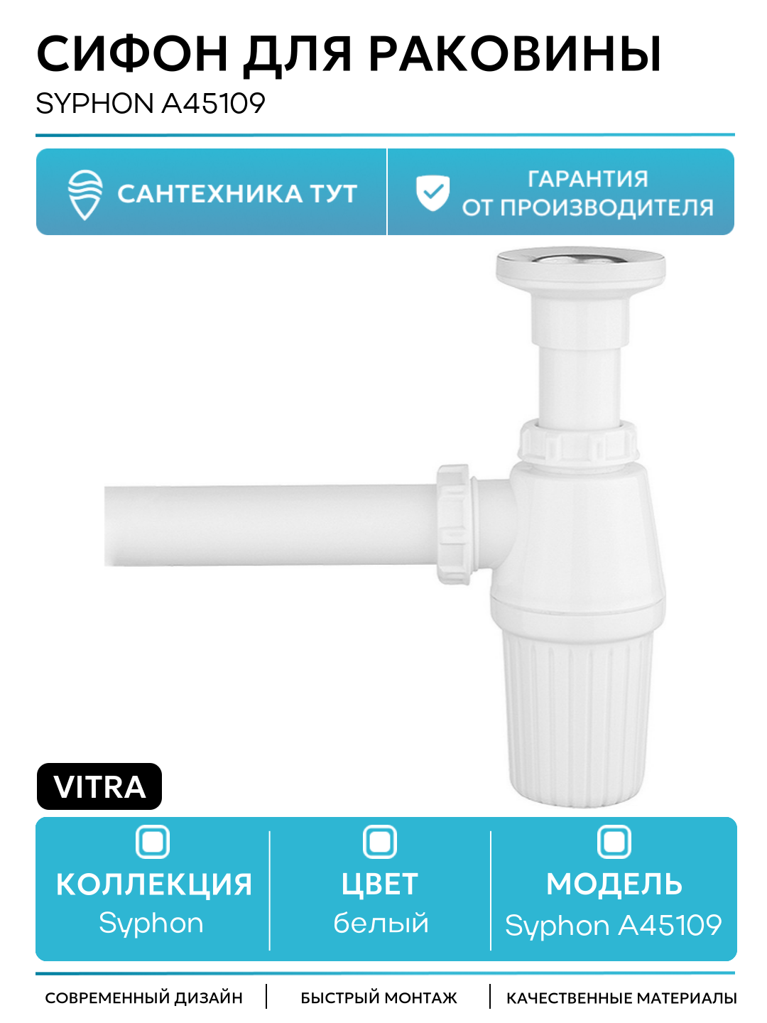 Купить Сифон для раковины Vitra Syphon A45109 Белый, современный стиль с доставкой по всей России. Сифон для раковины Vitra Syphon A45109 Белый, современный стиль: сравнение цен, характеристики, фото, актуальное наличие и цены.